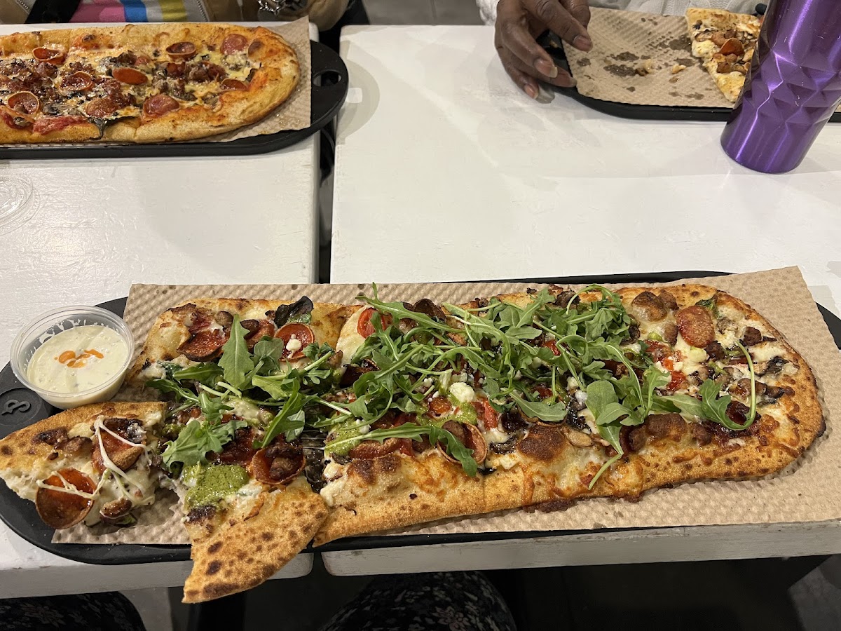 Very convenient on your seating area inside the pizza was amazing . Fresh ingredients!! Very little wait time . Convenient ordering kiosk Highly recommend