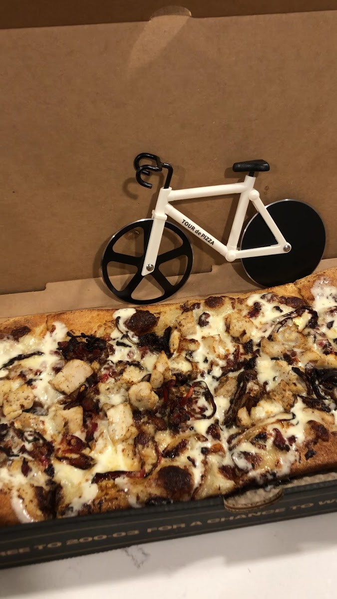 Pesto- Romano base with chicken, bacon, and pepperoni cups, grilled onions with fresh mozzarella and shredded mozzarella, and to top it off hot honey drizzle with parm/Romano. It's like a "subway" for pizza It will always be delicious, it's craft your own pizza after all