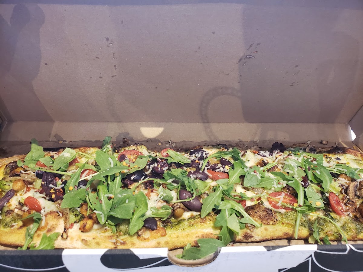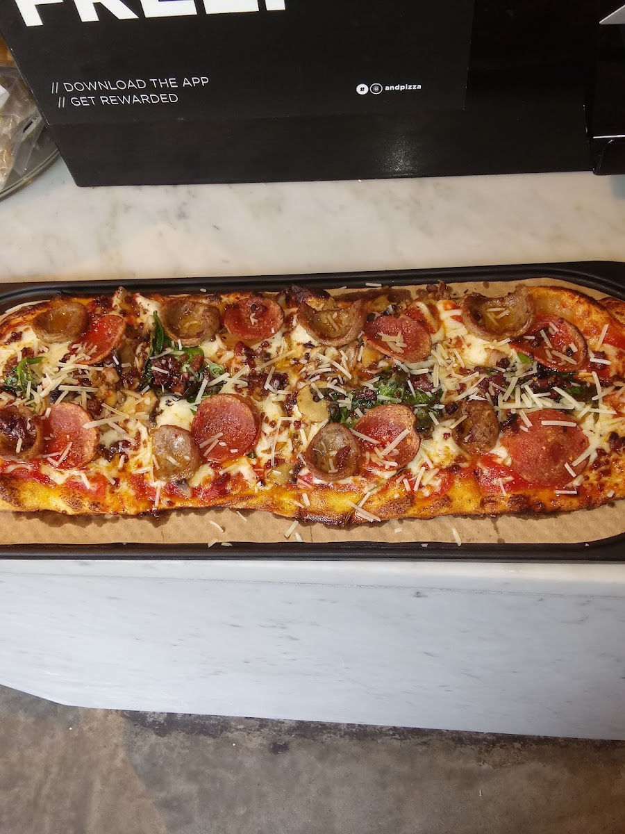 I've never been to an &pizza, so I was pleasantly surprised. Ths dough was crispy, but still light. The sauce seems to be more acidic, like it's tomato paste-based, but it was still good. Since the crust is more flexible like a neapolitan-style pie, next time I will load it up with more toppings and eat it portafoglio (wallet) style! I recommend that you order online, especially during lunch, because the wait time is longer than expected. Edit: &pizza has become our go-to for something easy + personalized. I love topping all kinds of stuff on mine and eating two slices folded into sandwiches. Hot tip, make an account + order through their app. 10/10 easy peasy, pizza squeezy. Edit 2: This isn't a regular stop for us anymore, but &pizza is still good if you're craving something customized.